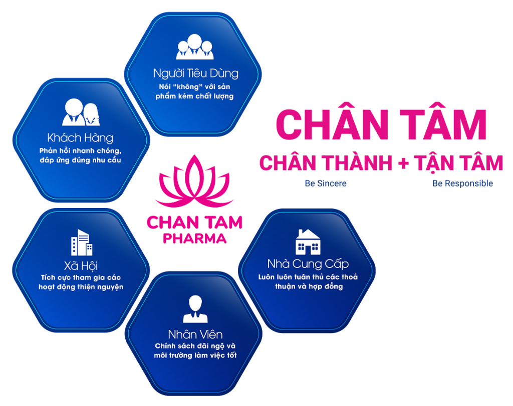 Được thành lập vào năm 2008, Chân Tâm Pharma là công ty phân phối dược phẩm uy tín tại Việt Nam. Với gần 20 năm phát triển, chúng tôi vận hành hệ thống chuyên nghiệp, cung cấp sản phẩm chất lượng cao và dịch vụ tin cậy trên toàn quốc; đồng thời cung cấp giải pháp trọn gói cho đối tác gồm đăng ký sản phẩm, nhập khẩu & bảo quản, phân phối (thuốc, thực phẩm bổ sung, thiết bị y tế, mỹ phẩm), tham gia thầu bệnh viện và tư vấn/marketing tiếp cận thị trường.