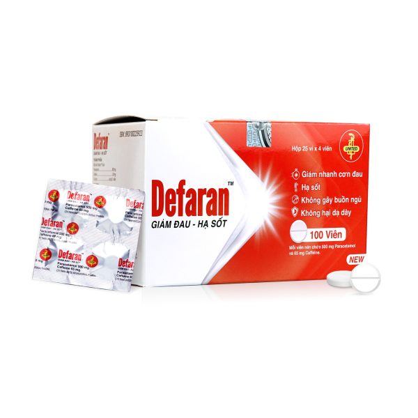 Defaran™ giúp giảm đau, hạ sốt nhanh chóng mà không gây buồn ngủ, được chỉ định điều trị hiệu quả các cơn đau từ nhẹ đến trung bình như đau đầu, đau cơ, đau răng, đau bụng kinh và các triệu chứng cảm cúm.
