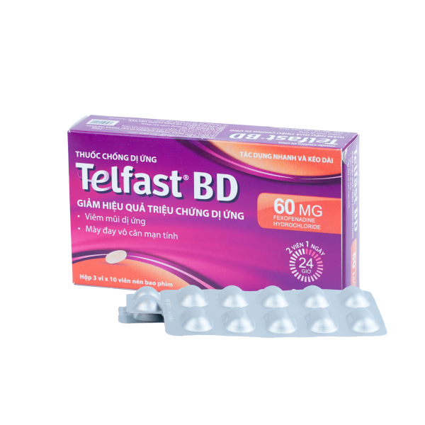 Telfast® BD là thuốc kháng histamin thế hệ mới giúp làm giảm nhanh chóng các triệu chứng viêm mũi dị ứng theo mùa và nổi mề đay mạn tính ở người lớn và trẻ em từ 12 tuổi trở lên.
